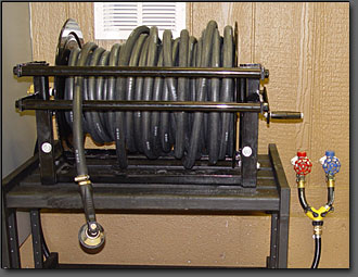 We have an endless selection of powder-coated steel hose reels available for your garage. Stop buying plastic hose reels every spring! Please contact us for more information.